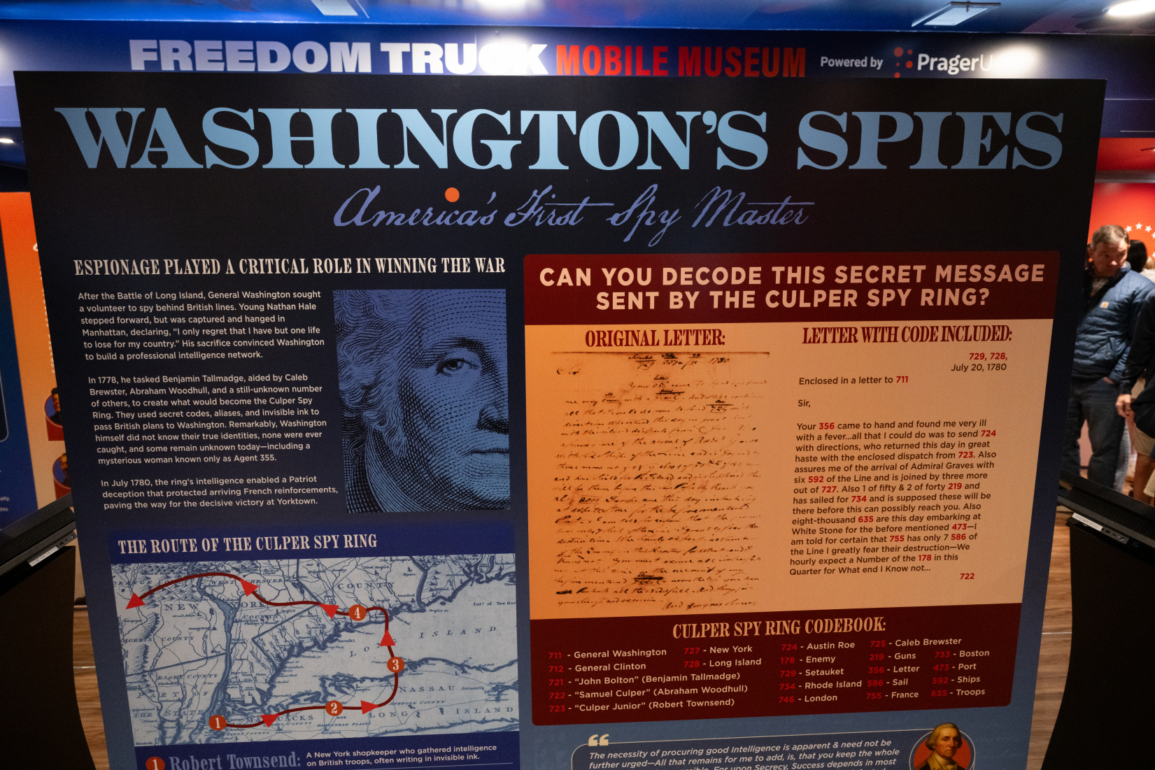 This Freedom Truck is one of a fleet of six mobile museums traveling across the United States in 2026 to celebrate America’s 250th anniversary. The mobile museum features interactive digital displays such as signing the Declaration of Independence, a “wall of heroes,” and Revolutionary War and other historical artifacts.